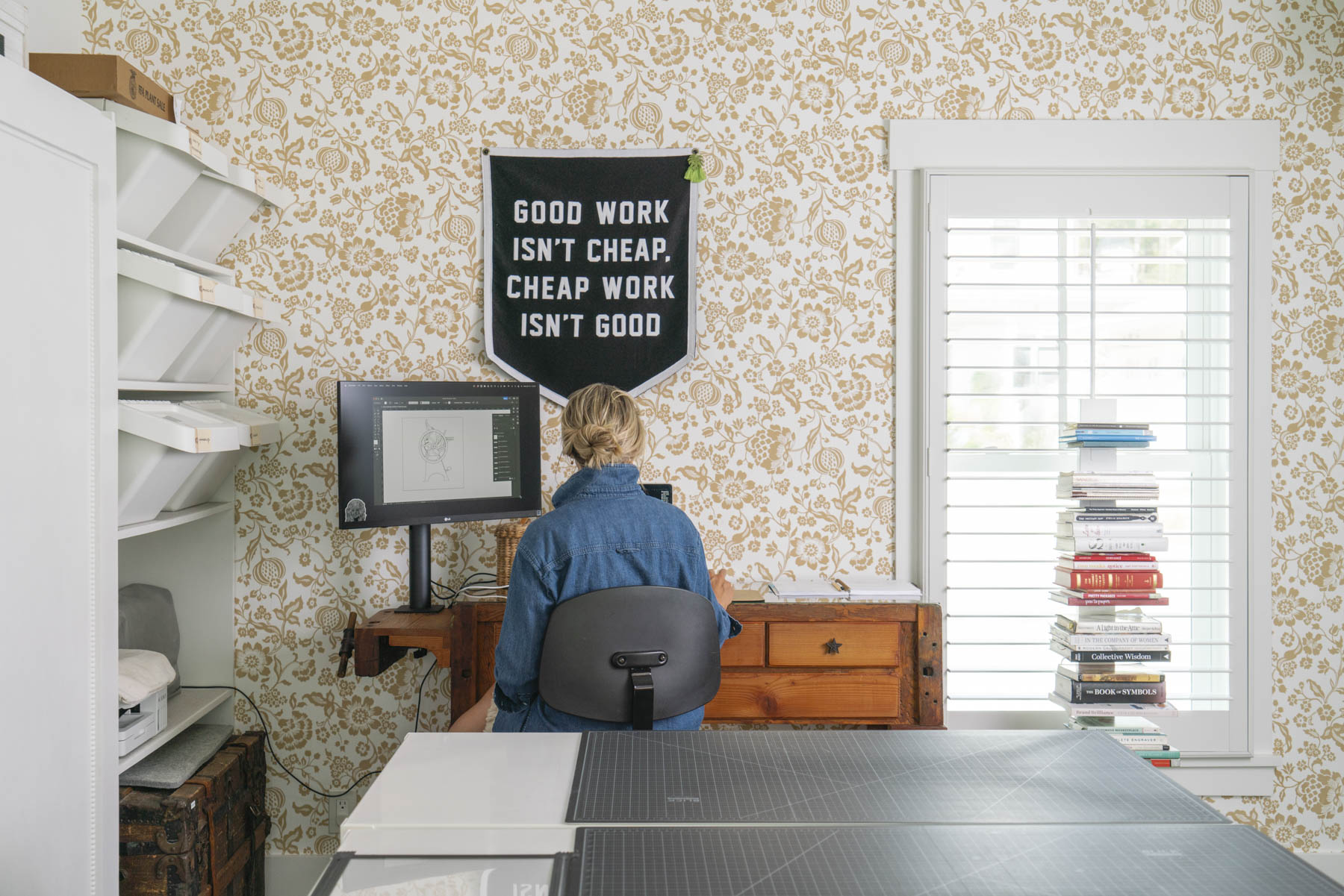 Next, while Amy got her hair and makeup done, I took wide shots and detailed photos of her studio space. The goal of these shots was to give Amy’s customers a look at her workspace, materials, and tools.