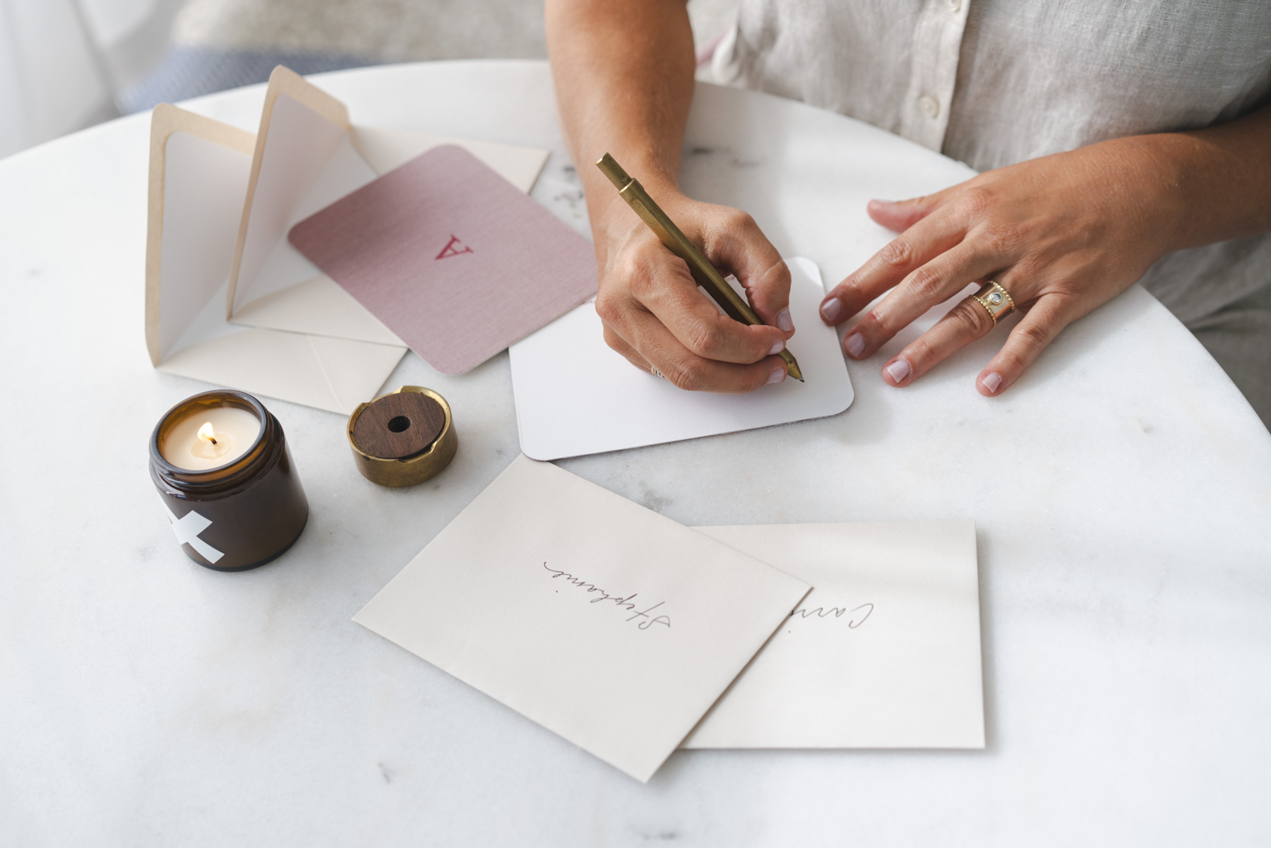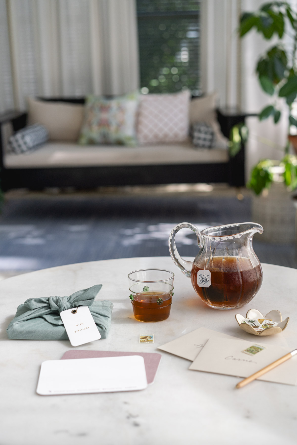 We started the day on her porch, capturing lifestyle images of “writing rituals,” the perfect way to bring our stationery photography to life. The goal was to show customers how they could use her products in everyday life, while also conveying the brand’s message that the art of the handwritten note is something to savor.